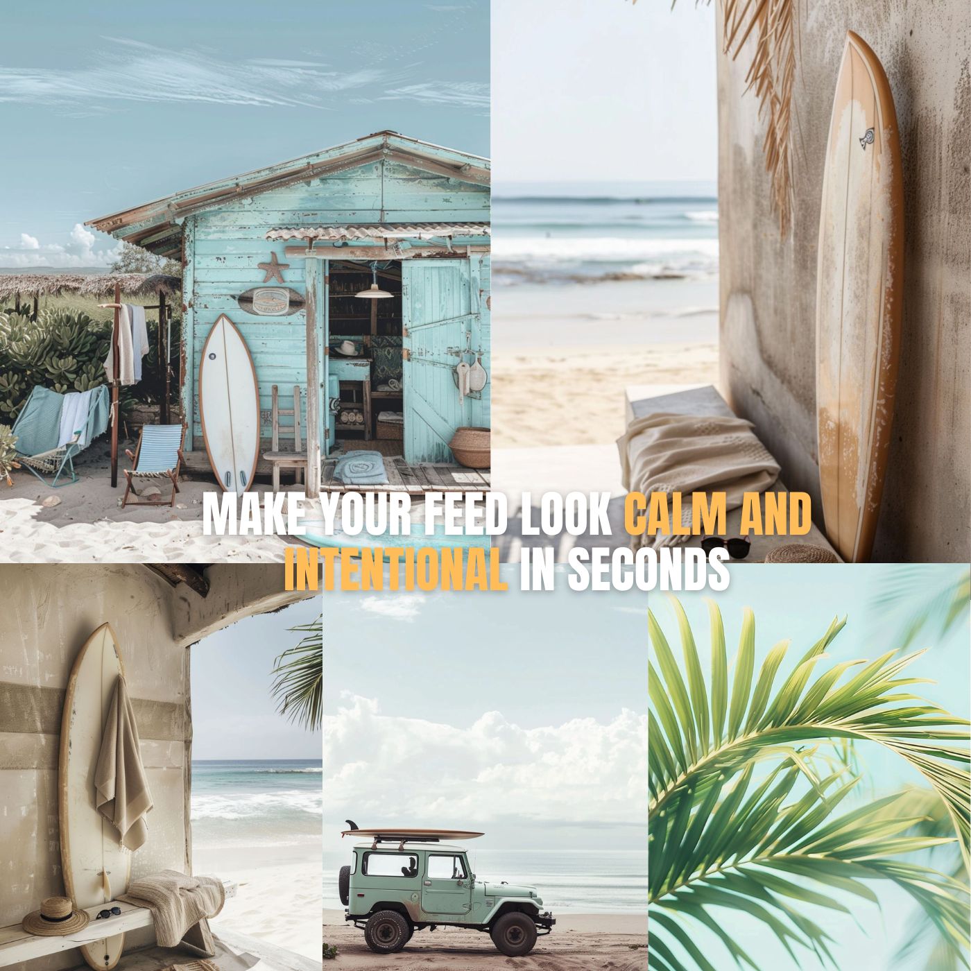 Calm Scroll™ is a curated collection of 50 surfer beach images designed to instantly make your Instagram, Facebook, or TikTok posts look cohesive, intentional, and relaxed — even if you’re posting last minute.